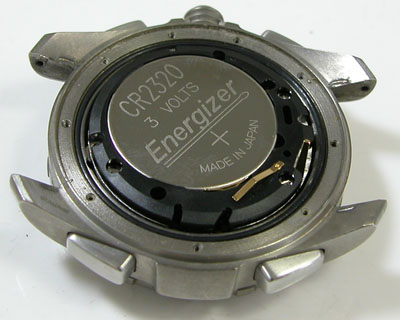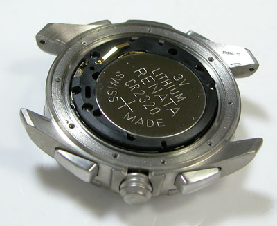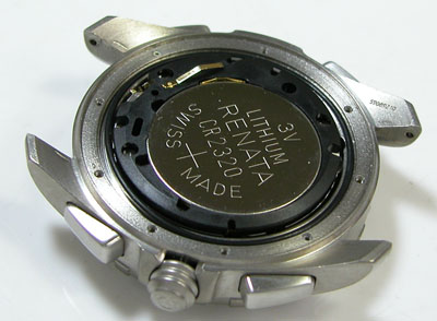 裏蓋を開けると電池がムーブメントを覆っています。