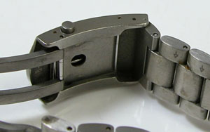 チタン無垢バンドに三つ折れプッシュバックル。