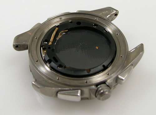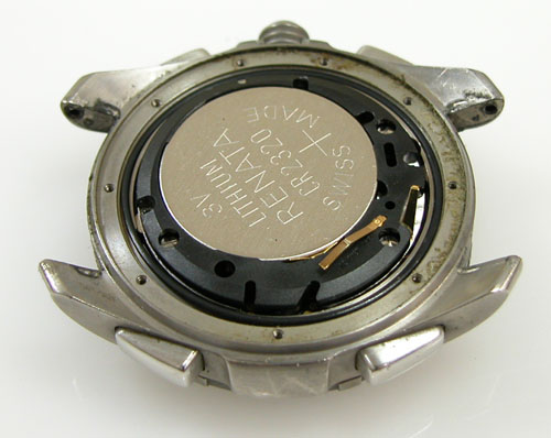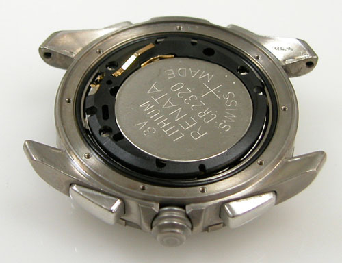 裏蓋を開けると電池がムーブメントを覆っています。