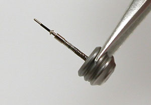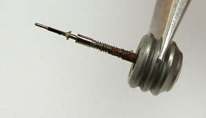 巻芯をチェックしますが根本にはかなりのサビが。竜頭から湿気が浸透した証拠。