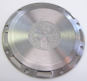 裏蓋は9ネジで留まっていて右が裏蓋裏側記載。
