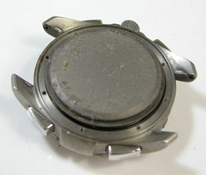 裏蓋を開けると耐磁プレートがムーブメントを覆っています。この裏蓋は隙間があるのでホコリが入るのは仕方がない。