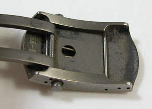 チタン無垢バンドに三つ折れプッシュバックル。