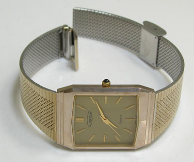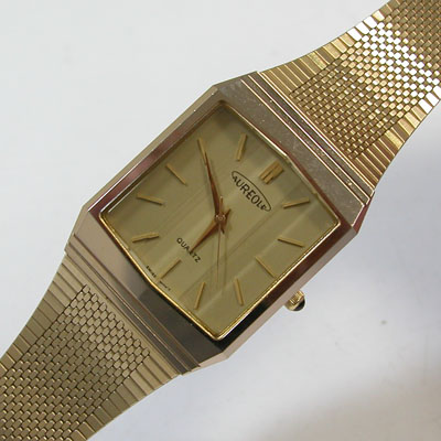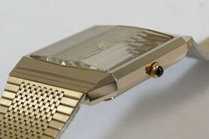 独特のカットガラスですがクォーツ薄型全盛期のモデル。よくこの腕時計が未使用であったものだと。わたしこれが錆びてボロボロになった物しか見た事が無かったもので。
