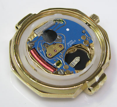 綺麗になったケースにムーブメントを戻して電池格納部をチェックします。