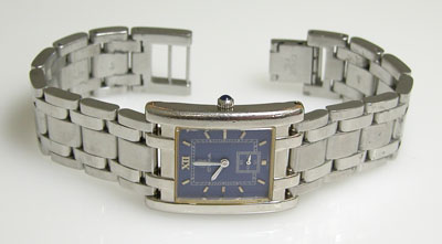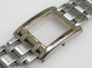 ステンレス無垢バンドにブレスバックル。