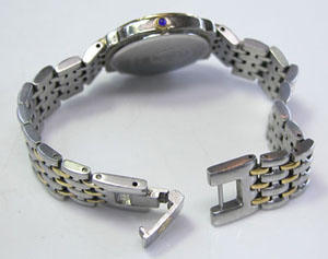 ステンレス無垢バンドにブレスバックル。