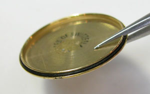 裏蓋は”はめ込みタイプ”で右が裏蓋記載。