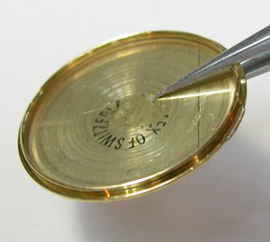 裏蓋の裏側もチェックします。おや「SWITZERL・・・」これってシチズンでは無い?