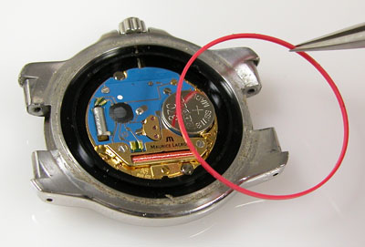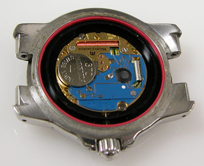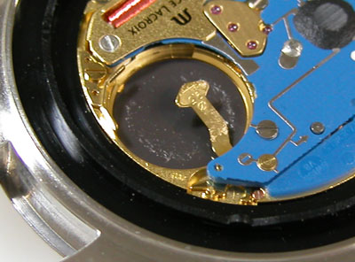 綺麗になったケースにムーブメントを戻して電池格納部をチェックします。