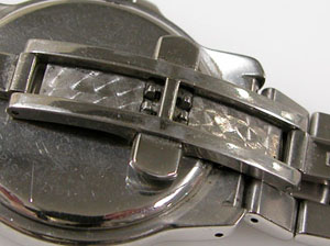 ステンレス無垢バンドに両開きバックル。