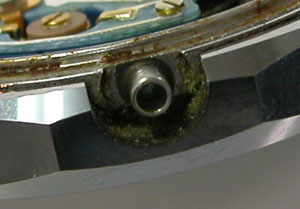 綺麗になったケースにムーブメントを戻して電池格納部をチェックします。