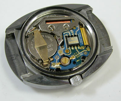 ムーブメント拡大。アンティークなクォーツムーブですね。
