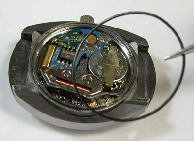 綺麗になったケースにムーブメントを戻して電池格納部をチェックします。