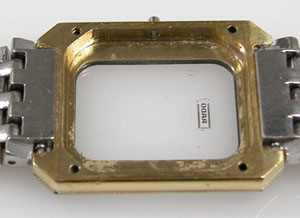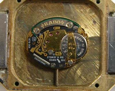 ケースの内側もチェックします。ガラスの「RADO」の文字はガラスのプレートを貼り付けてあります。
