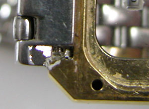 都合でブレスを交換して貰っても良いという事ですが、塗料かなにかで埋まっている。