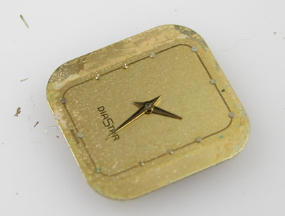 ムーブメント取り出しで文字盤が乾燥したところで再度、拭いて。