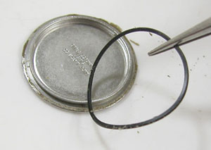 綺麗になったケースにムーブメントを戻して電池格納部をチェックします。