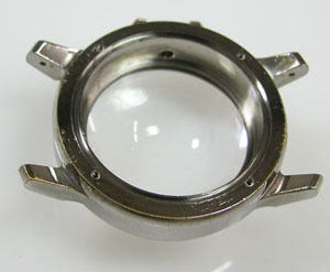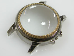 裏蓋を開けると耐磁プレートがムーブメントを覆っています。この耐磁プレート、竜頭を抜かないと外せない。つまり電池交換のみでも竜頭を抜く必要があります。