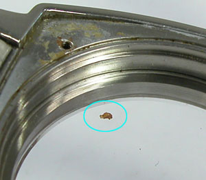 穴を見ても錆びた粉がビッシリなので覚悟して開けると意外に綺麗。パッキンが効いていたことが分かります。
