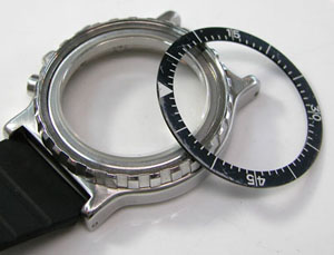 防水テスト替わりに裏蓋閉めて洗浄で異常は無し。ところが洗浄で回転ベゼルの目盛板が外れましたので後で接着します。