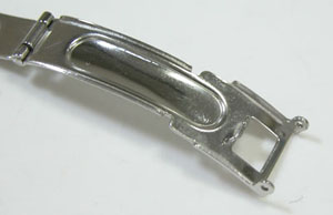 ステンレス板巻きバンドに三つ折れプッシュバックル。