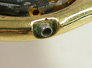 綺麗になったケースにムーブメントを戻して電池格納部をチェックします。