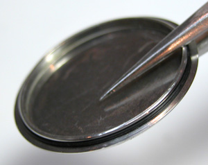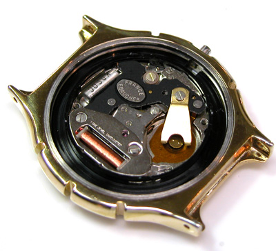 綺麗になったケースにムーブメントをもどして電池格納部をチェックします。