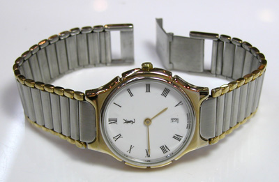 Yve Saint LaurentはCITIZENかと思いましたが、兎に角は電池交換メンテナンスです。ブレスは板巻きステンレスバンド。