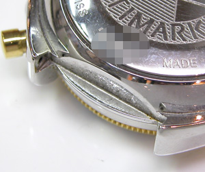 裏蓋はスクリューバックですが、この工具を掛ける凹みが浅いし狭い。