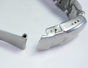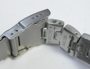 裏蓋はスクリューバックですが爪を掛ける所が狭いので開けるのが大変。ラグ部もチェックしますがベルトは外さない方がよいですね。