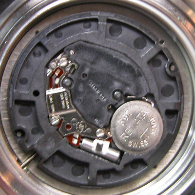 綺麗になったケースにムーブメントをもどして電池格納部をチェック。