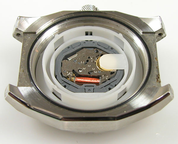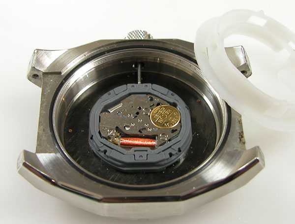 綺麗になったケースにムーブメントを戻して電池格納部をチェックします。