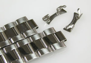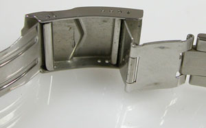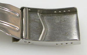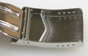 ステンレス板巻きバンドに三つ折れバックル。