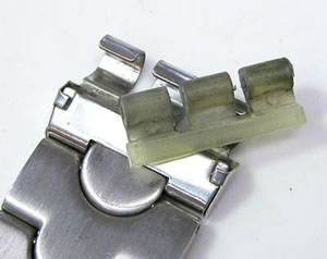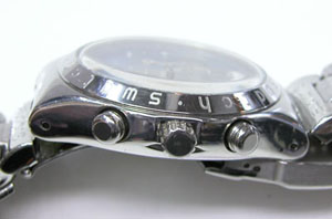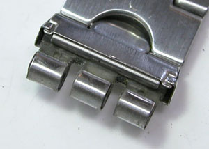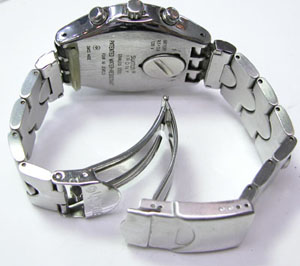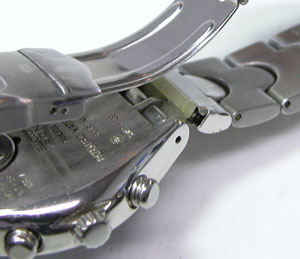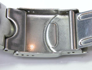 ステンレス無垢バンドに三つ折れダブルロック。