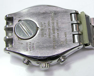 SWATCHは一部の自動巻限っては裏蓋があるタイプもありますが基本的には裏蓋は無く、電池ふたのみです。