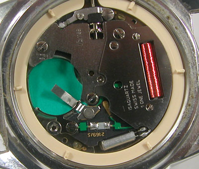 綺麗になったケースにムーブメントを戻して電池格納部をチェックします。