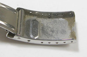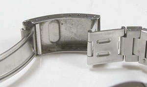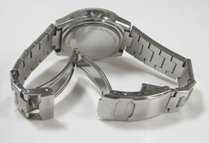 ステンレス無垢バンドに三つ折れダブルロック。
