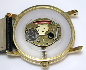 綺麗になったケースにムーブメントを戻して電池格納部をチェックします。