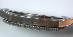 裏蓋は”はめ込みタイプ”こちら裏蓋記載。型番らしきものが・・・無い。