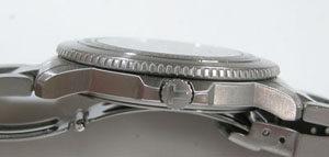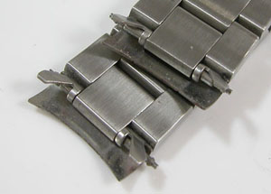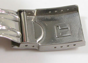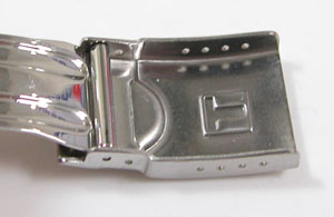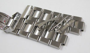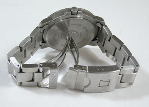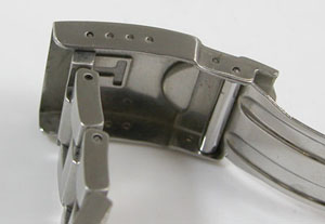 ステンレス無垢バンドに三つ折れダブルロック。