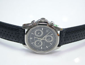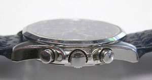 フラットガラスでクロノグラフ。ステンレス無垢尾錠ですね。