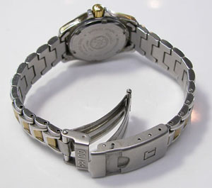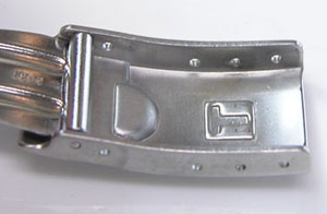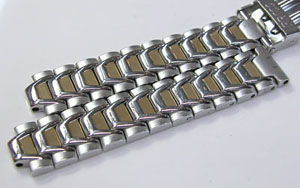 ステンレス無垢バンドに三つ折れダブルロック。