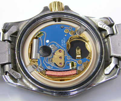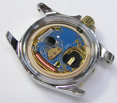 綺麗になったケースにムーブメントを戻して電池格納部をチェックします。