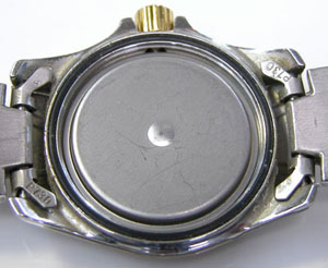 裏蓋はスクリューバックで右が裏蓋記載。
