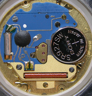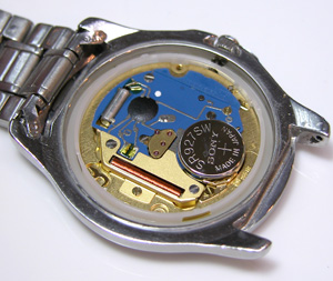 裏蓋の表も磨いてピッカピカ!ムーブメントを戻して電池格納部をチェックします。