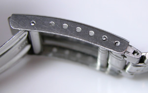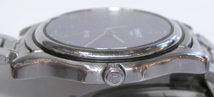 かなり使用感がある腕時計で内部が曇るそうです。微調整位置をチェックしますが、バックルのバネ棒位置がおかしいですね。これは後で修正しておきましょう。