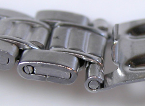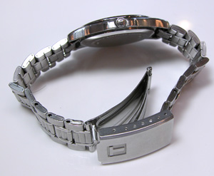 ステンレスのベルトが伸びています。裏蓋は”はめ込みタイプ”