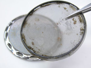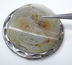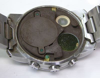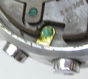 綺麗になったケースにムーブメントを戻して電池格納部をチェックします。