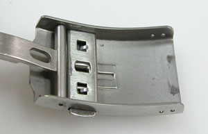 ベルトごと洗浄でバックルの汚れも綺麗に。といっても素人さんがする本体は指で持ったままバックルを洗浄器につけるので手間が掛かります。